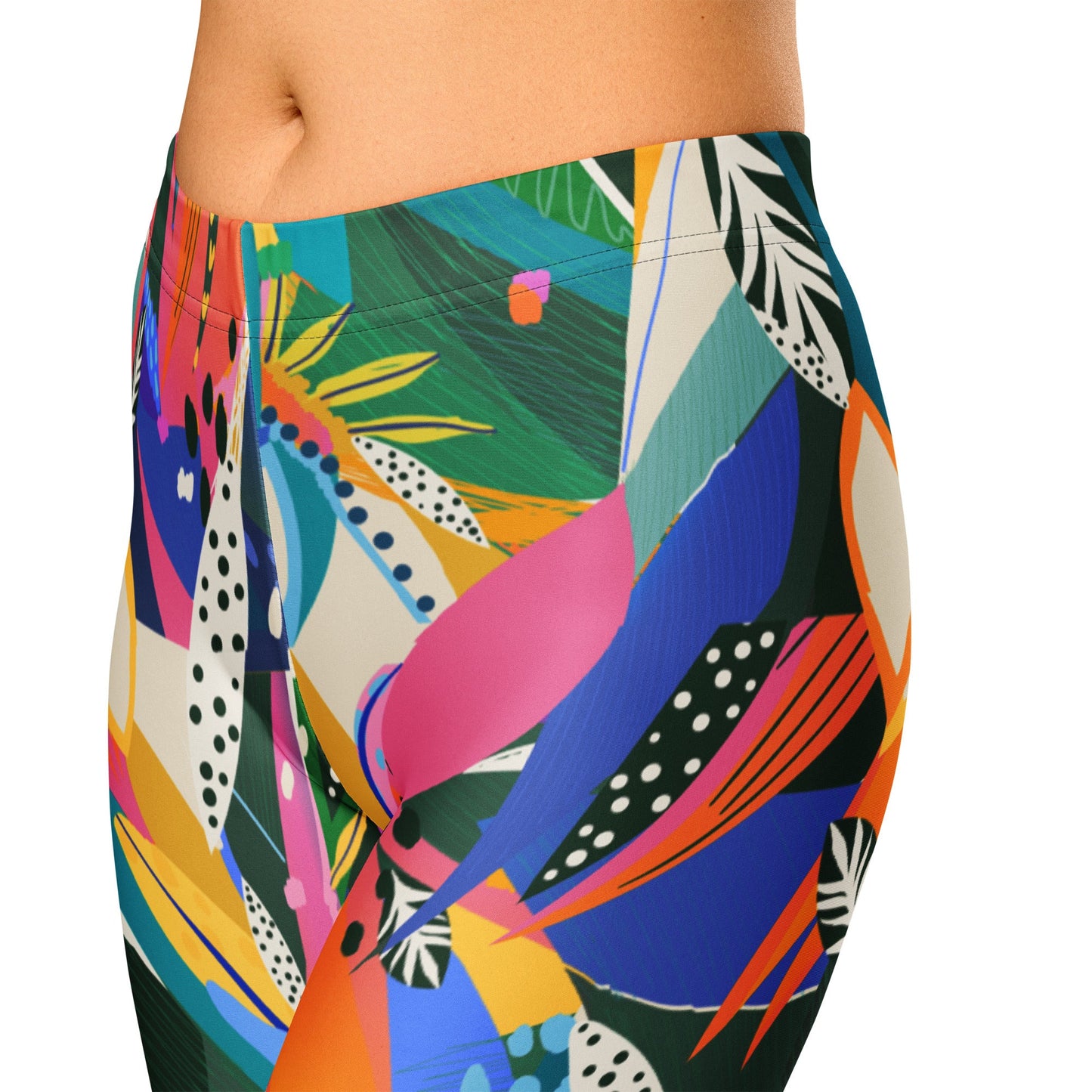 Capri-Leggings mit buntem abstrakten Muster – 3/4 Sporthose Damen mit UV-Schutz & Stretch | Farbenfrohe Activewear